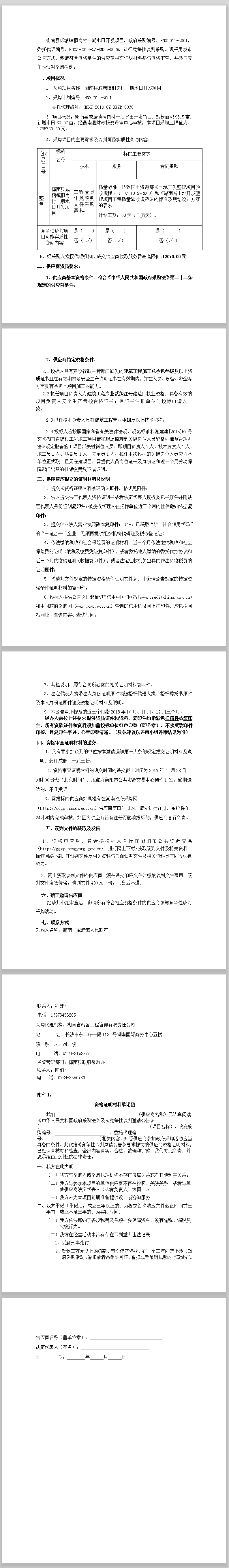 衡南縣咸塘鎮(zhèn)桐崗村一期水田開發(fā)項目談判公告